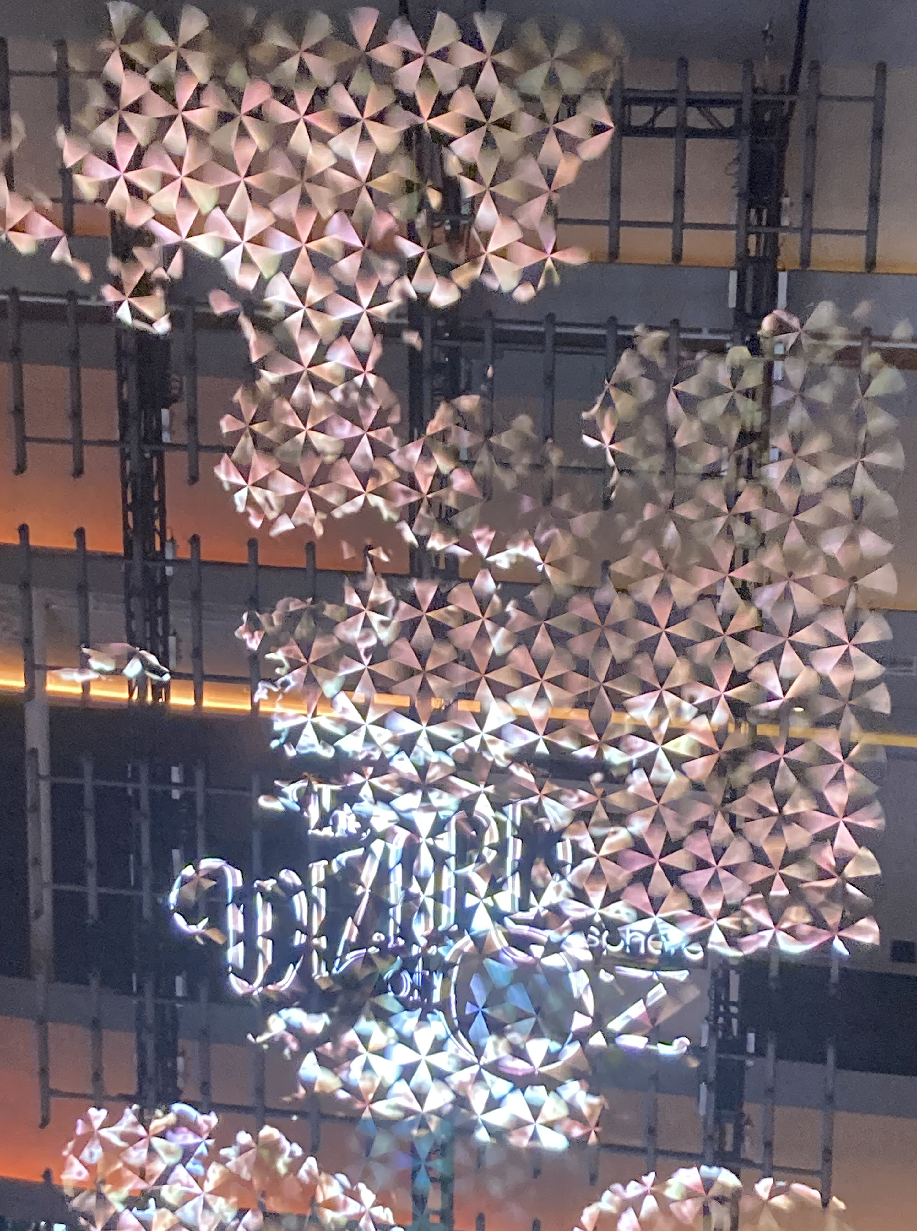 it is sphere video. The stage, curtain, speaker stacks, video monitors,